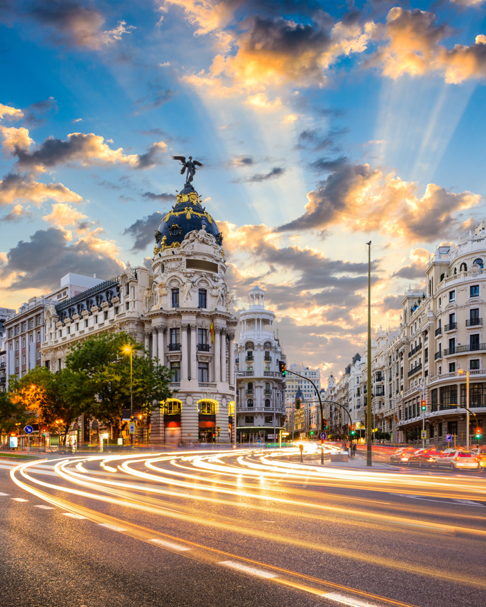 İspanya'nın başkenti Madrid, ülkenin siyasi ve kültürel kalbi olarak öne çıkıyor. Geniş bulvarları, tarihi meydanları ve müze üçgeni olarak bilinen sanat rotasıyla şehir, Avrupa'nın en güçlü kültür merkezlerinden biri. Prado, Reina Sofía ve Thyssen-Bornemisza gibi dünya çapındaki müzeler, Madrid'i sanat meraklıları için vazgeçilmez bir durak haline getiriyor. Kraliyet Sarayı'nın görkemli silueti, Plaza Mayor'un tarih kokan atmosferi ve Gran Vía'nın modern şehir ritmi Madrid'in farklı yüzlerini bir araya getiriyor. Gündüzleri sanat ve tarih, akşamları ise tapas restoranları ve canlı gece hayatıyla Madrid, İspanya'nın en dinamik şehir deneyimlerinden birini sunuyor.