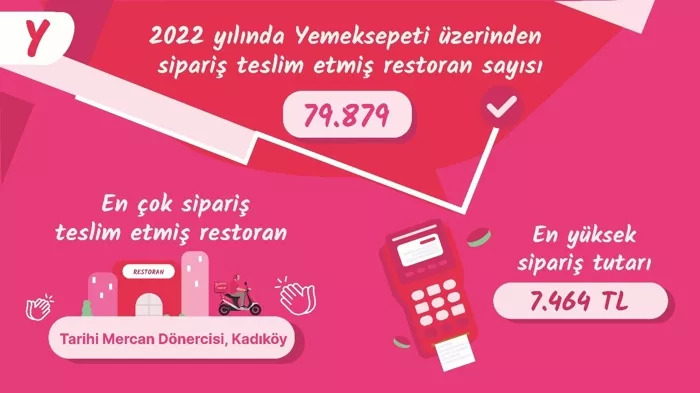 Türkiye'nin hızlı ticaret platformu Yemeksepeti, dolu dolu geçirdiği 2022 yılına ait verileri açıkladı. Yemek siparişilerinin yanı sıra, Yemeksepeti Market ve Yemeksepeti Mahalle ile de 30 milyonun üzerindeki kullanıcısının hayatını bu sene de kolaylaştıran Yemeksepeti; sipariş sayılarında tarihi rekorlarlar kırdığı ve farklı alanlarda ilkleri başardığı bir yılı daha geride bırakıyor.