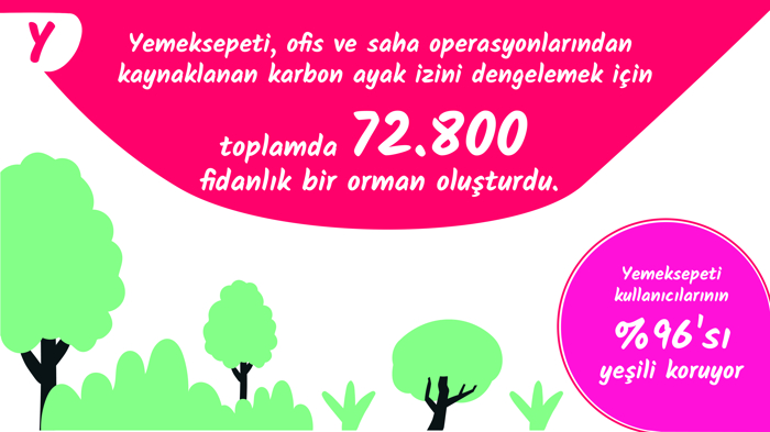 Karbon ayak izini dengelemek için hayata geçirdiği 72.800 fidanlık Yemeksepeti Ormanları'nı kullanıcılarına hediye eden Yemeksepeti; hedefini, önümüzdeki yıllarda sıfır karbon noktasına ulaşmak olarak güncelledi.