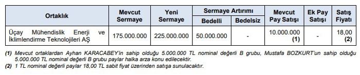 SPK'nin haftalık bültenine göre, Kurul, Üçay Mühendislik Enerji ve İklimlendirme Teknolojileri AŞ'nin 18 liradan halka arz başvurusunu uygun buldu.
