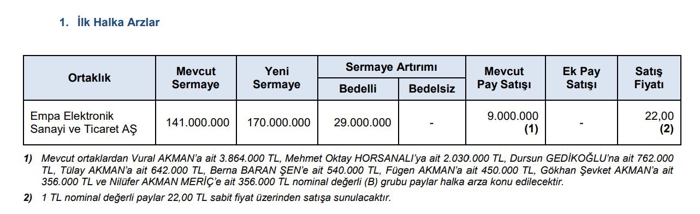 SPK haftalık bültenine göre Kurul, Empa Elektronik Sanayi ve Ticaret AŞ'nin 22 liradan halka arzını uygun buldu.x