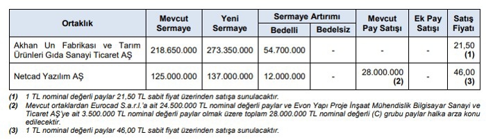 Netcad Yazılım AŞ'nin ise sermayesinin 125 milyon liradan 137 milyon liraya yükseltilmesine karar verildi. Halka arz kapsamında, mevcut ortaklara ait toplam 28 milyon lira nominal değerli pay satışına onay verildi.
