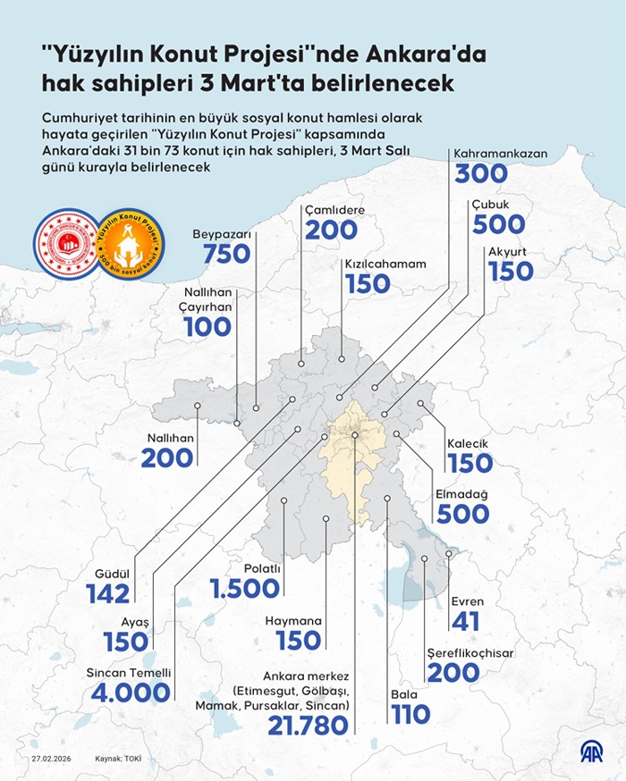"Ankara merkezde (Etimesgut, Gölbaşı, Mamak, Pursaklar ve Sincan) 21 bin 780, Sincan Temelli'de 4 bin, Polatlı'da 1500, Beypazarı'nda 750, Çubuk ve Elmadağ'da 500'er, Kahramankazan'da 300, Nallıhan'da 200, Nallıhan Çayırhan'da 100, Şereflikoçhisar ve Çamlıdere'de 200'er, Güdül'de 142, Bala'da 110, Evren'de 41, Akyurt, Ayaş, Haymana, Kalecik ve Kızılcahamam'da ise 150'şer konut."