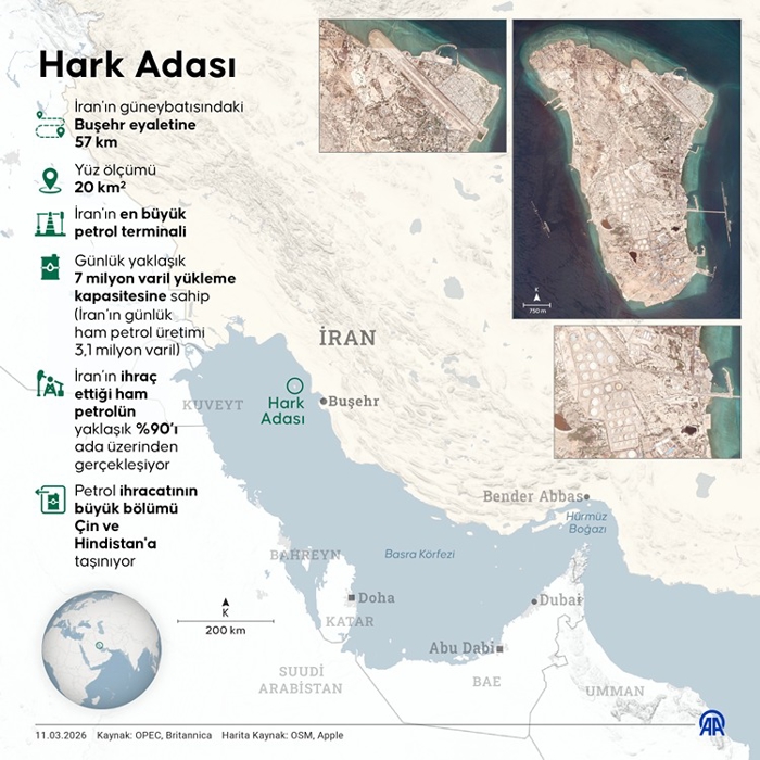 Tahran'ın petrol ihracatının %90'ını gerçekleştiren ada, uzun zamandır İran ekonomisi için kritik bir öneme sahip. ABD daha önce 13 Mart'ta Hark Adası'ndaki askeri tesisleri hedef almıştı.