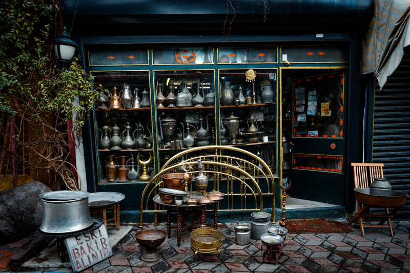 Geleneksel el sanatlarının sürdürüldüğü bölge, geçmişle bugünü buluşturan atmosferi ve renkli vitrinleriyle ziyaretçilerine çok katmanlı bir şehir deneyimi sunuyor. (Fotoğraflar; AA)