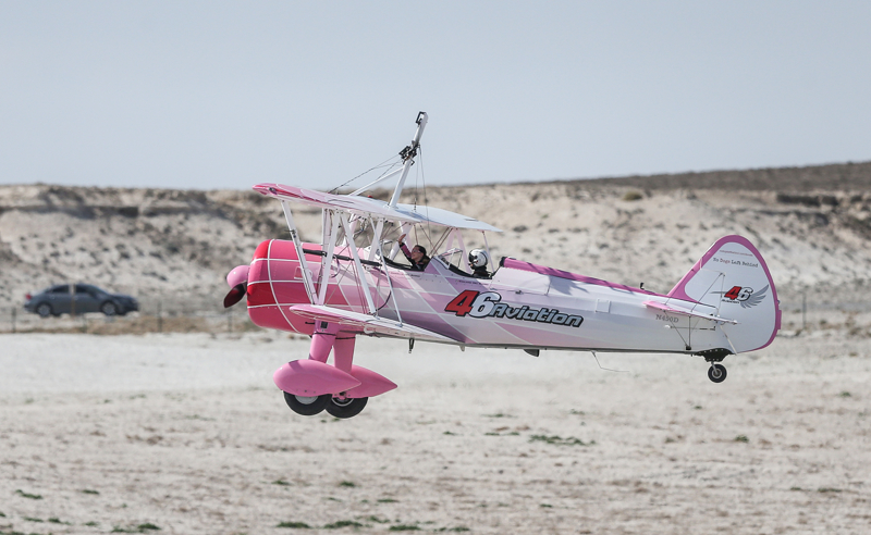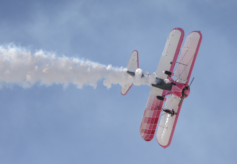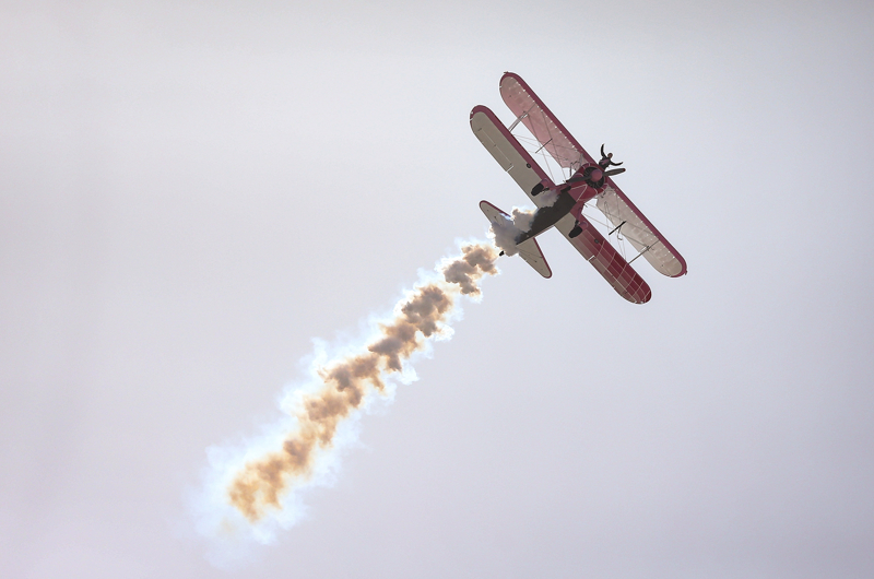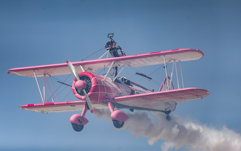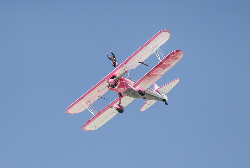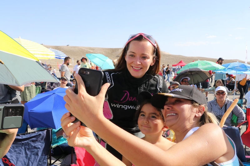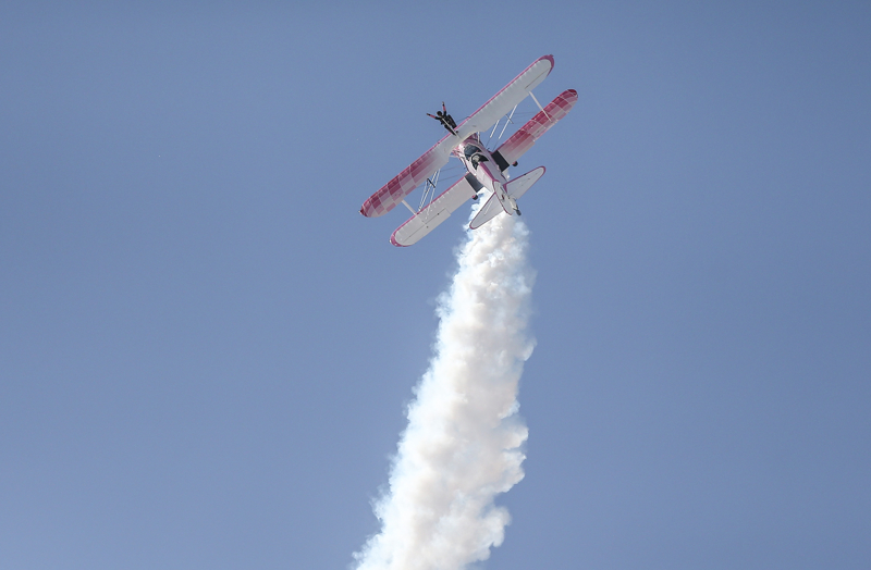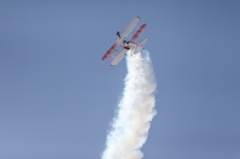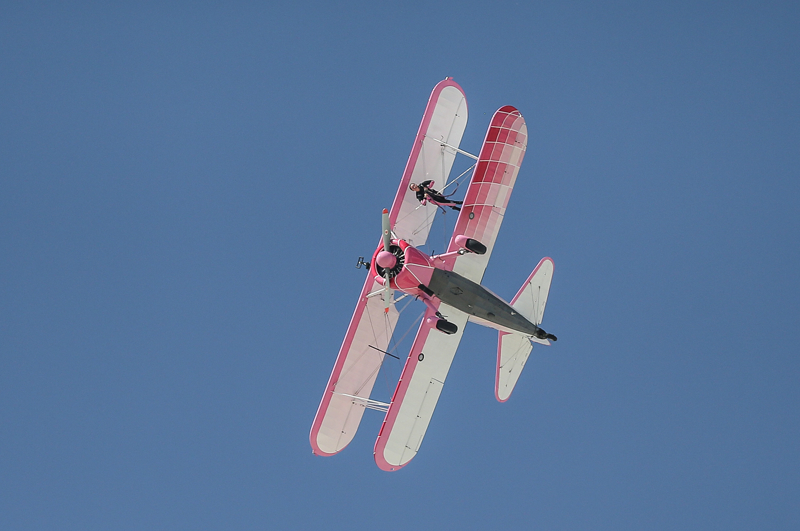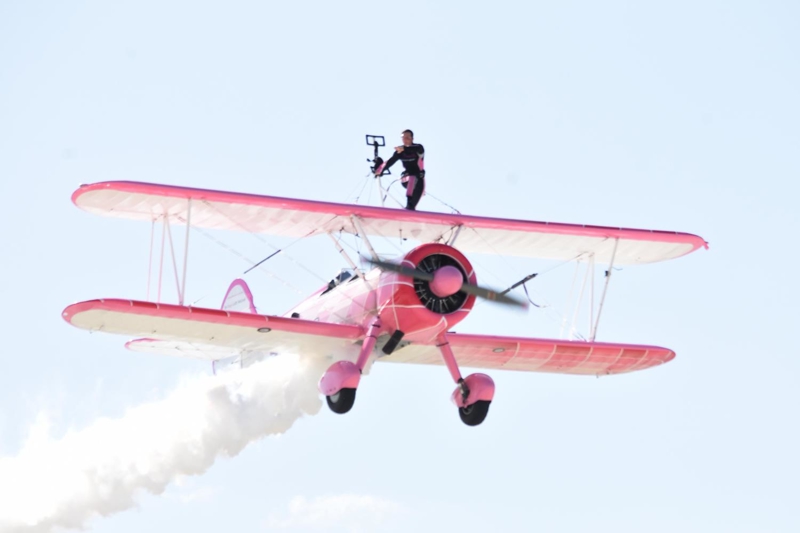 Bazı manevralarda özel bir aparatla kendini uçağın üzerine sabitleyen Danielle Del Buono'nun uçağın kanadının üzerinde ve kanatlar arasında sunduğu gösteri izleyenleri heyecanlandırdı.
