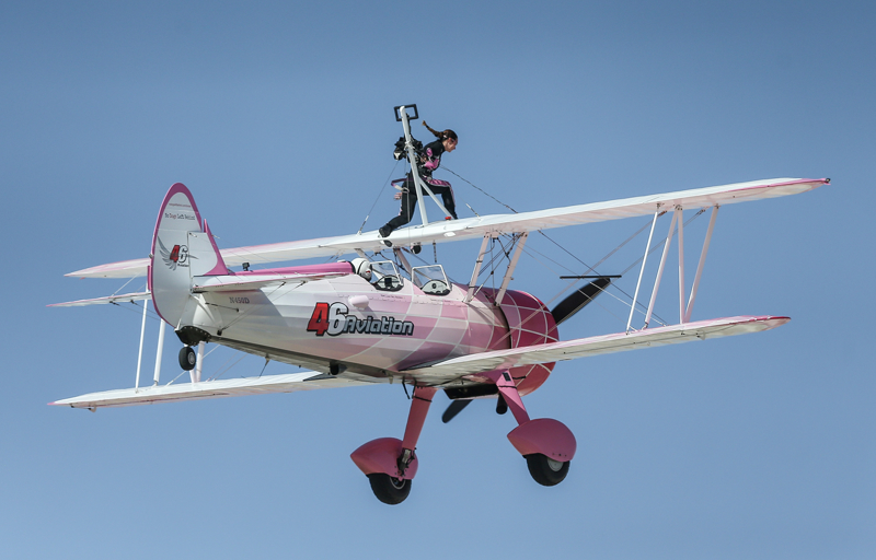 İsviçreli Danielle Del Buono, 15 yıldan bu yana uçuş sırasında Boeing Stearman tipi uçağın kanadında yürüyerek gösteri yapıyor.