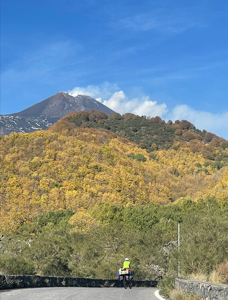 Sonbaharda yeşil, sarı ve kahverenginin farklı tonları, yüksekliği 3 bin 200 metre civarında olan Avrupa'nın en aktif yanardağı Etna'yı "sakin yanardağ" güzelliğine büründürüyor.
