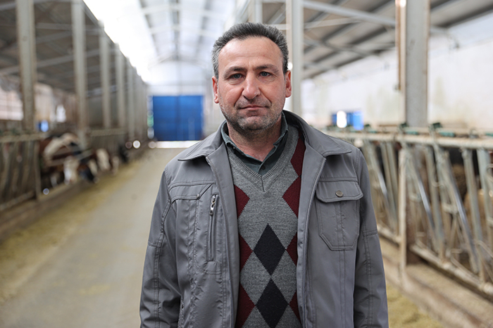 "Daha önce de hayvancılık yapıyorduk ama bu şekilde değildi. Eskiden yaklaşık 20 hayvanımız vardı. Genişletelim, daha yüksek verim alalım diye tesis kurmak istedik. Burayı kurmaya maddi gücümüz yetmeyeceği için destek almamız gerekiyordu. TKDK'den destek almak için proje hazırladık. 2018'de inşaatımız tamamlandı. O zaman 35 hayvanla hastalıktan ari işletme olarak başladık. Şu anda 160 hayvanımız var. Günlük 1,5 ton süt üretiyoruz. Buranın toplam maliyeti 41 milyon lira civarında. TKDK'nin güncel rakamlarla yaklaşık 21 milyon lira desteği oldu. İkinci projemiz de 2024'te yapıldı. Robotik sağım ve güneş enerjisi panelleri kurduk. Tesisi daha da genişletip robotik sağım sayısını artırmak istiyoruz. Yem girdilerini düşürmek için kendimiz üretmeyi de düşünüyoruz."