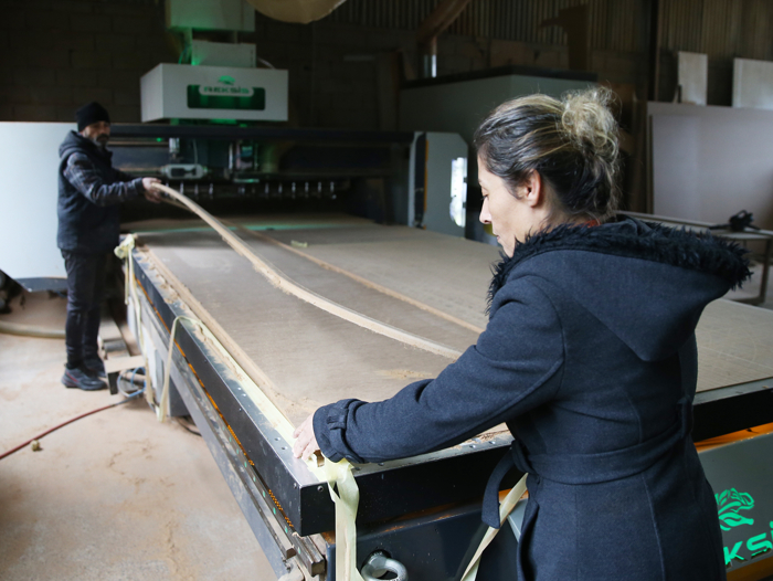Antalya'nın Alanya ilçesinde devletten aldığı hibe krediyle mobilya atölyesi kuran kadın girişimci, kullandığı programla tasarladığı ürünlerin makineyle kesimini yaparak sektörün önemli bir ihtiyacını gideriyor.