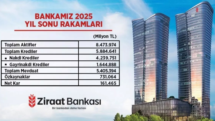Ziraat Bankası Genel Müdürü Alpaslan Çakar, 2025 yılı sonuçlarına ilişkin değerlendirmesinde şu ifadeleri kullandı: "2025 yılı, küresel ölçekte belirsizliklerin ve volatilitenin yüksek seyrettiği bir yıl olmasına rağmen, güçlü finansal yapımız, yaygın hizmet ağımız ve etkin bilanço yönetimimiz sayesinde sektör liderliğimizi daha da pekiştirdiğimiz bir yıl oldu. Aktif büyüklükten kredilere, mevduattan özkaynaklara, dış ticaretin finansmanından, ihracat kredilerine ve dijital bankacılığa kadar birçok alanda birinciliğimizi sürdürdük. Reel sektörü, üretimi, ihracatı ve özellikle tarımı desteklemeye devam ederken, yurt dışı yapılanmamızı da stratejimizin bir parçası olarak güçlendiriyoruz. Ziraat Bankası olarak hedefimiz, yalnızca Türkiye' de değil bölgemizde de lider banka olmaktır. Güçlü finansal yapımız ve sürdürülebilir büyüme stratejimiz ile Ziraat' i bölgesinin referans bankası ve markası haline getirmekte kararlıyız. Özkaynaklarda sağlanan %55'lik büyüme, önümüzdeki dönemde stratejilerimizi daha güçlü şekilde hayata geçirmemize imkân sağlayacaktır. Ziraat Finans Grubu olarak ekonomimize en fazla katma değer sağlayacak alanları desteklemeye; ülkemize ve müşterilerimize faaliyet gösterdiğimiz her alanda daha fazla katkı sunmaya devam edeceğiz. Finans Grubumuzun diğer üyeleri de faaliyet gösterdikleri sektörlerde lider ya da liderliğe yakın konumlarda bulunmaktadır. Ziraat Finans Grubu olarak elde ettiğimiz bu finansal sonuçları yalnızca bilanço başarısı olarak değil; Ülkemize, çiftçimize, ihracatçımıza, üreticimize ve reel sektörümüze duyduğumuz sorumluluğun bir yansıması olarak görüyoruz. Misyonumuz ve köklü geçmişimiz ile değişen finansal sistemin dinamik, öncü ve saygın finans grubu olma vizyonumuzu kararlılıkla sürdüreceğiz" dedi.