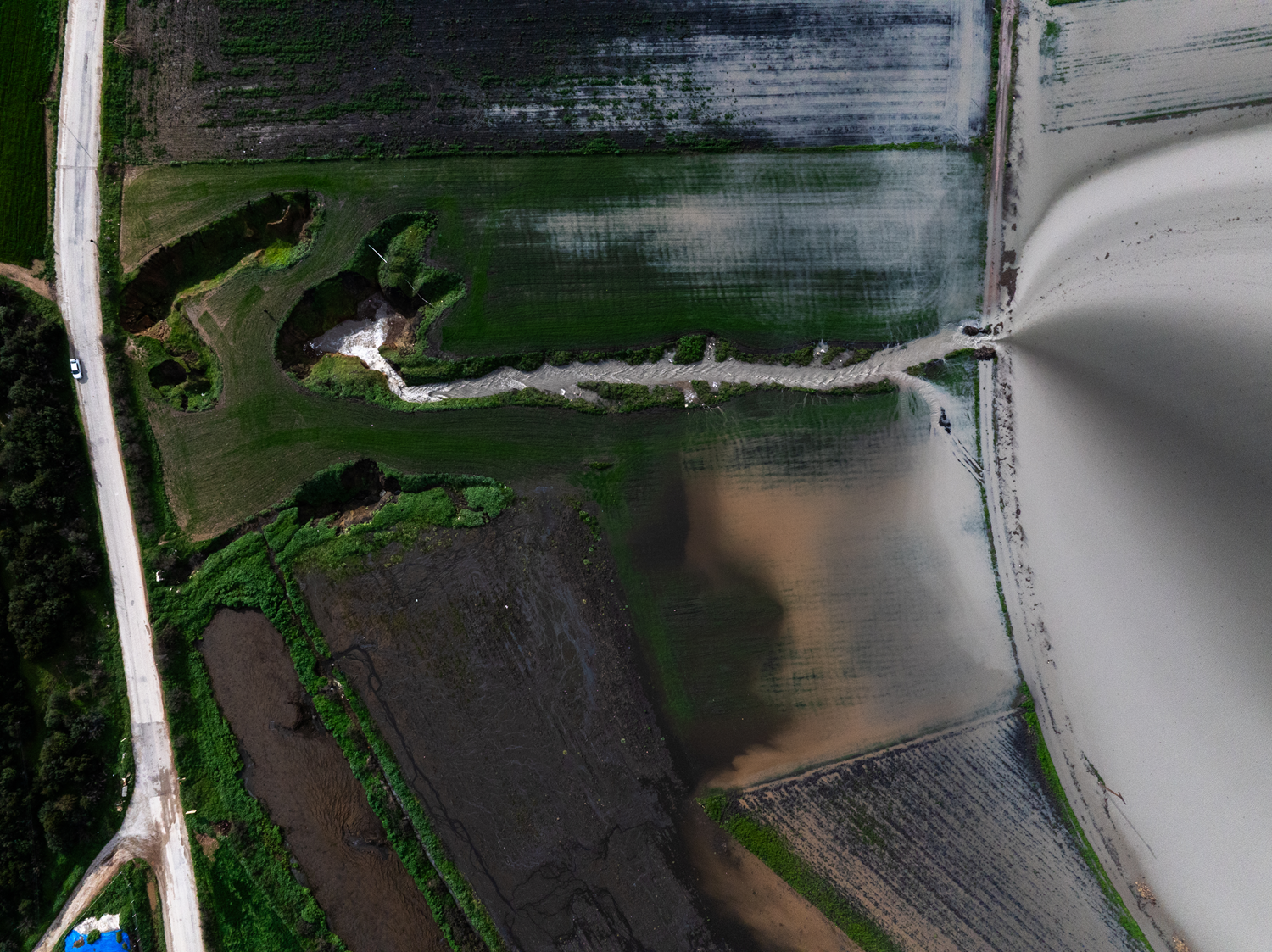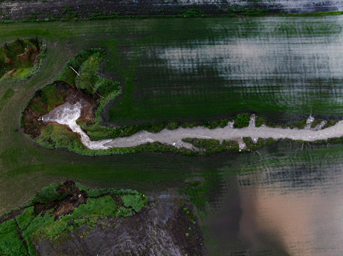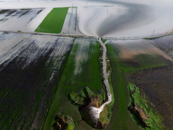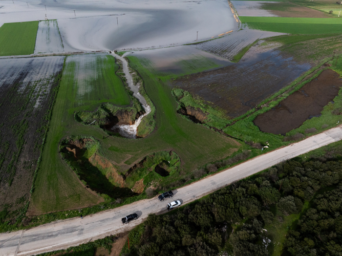 Arazilerinin yağışla birlikte yeniden sular altında kalması üzerine bölgeye giden çiftçiler, yağmur suyunu hasat etmek için kuyuları kontrol ediyor.