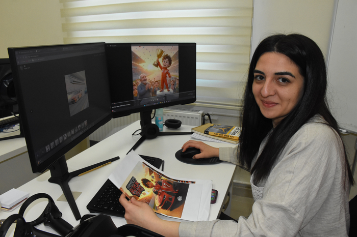 "Burada hem sektörel bazlı hem de kendi yazılımsal ürünlerimizi gerçekleştiriyoruz. Artırılmış gerçeklik, sanal gerçeklik ve yapay zeka alanlarında projeler hazırlıyoruz. Dijital müzecilik alanında çalışmalarımız var. Kendi içeriklerimizle interaktif eğitim materyalleri ve oyunlar üretiyoruz. Çocuklara daha kalıcı öğrenim modelleri sunmak üzere çalışmalar gerçekleştiriyoruz. Mermer sektörü için sanal mağaza oluşturuyoruz. Firmaların tanıtım ve reklam alanlarında hizmetlerimiz bulunuyor."