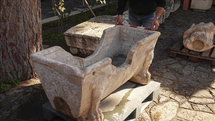 UNESCO Dünya Miras Listesi'ndeki Efes Antik Kenti'nde geçen yılki kazılarda Roma dönemine ait mermer küvet ile erkek heykeli de bulunmuştu