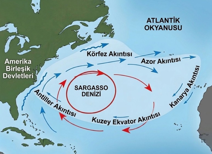 Sargasso'yu diğer tüm denizlerden ayıran bu benzersiz yapı, Kuzey Atlantik Alt Tropikal Girdabı (Northern Atlantic Subtropical Gyre) içinde konumlanmasından kaynaklanır.