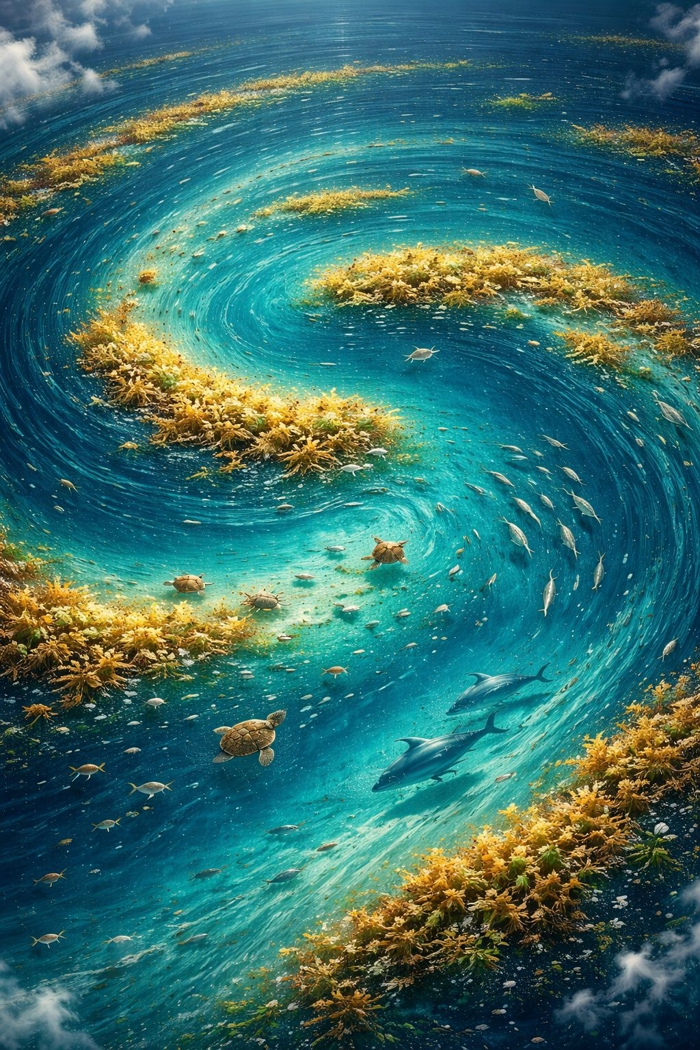 Denizdeki bu devasa yosun yosun ağları, okyanusun en zengin sığınaklarından biri. Bu altın kahverengi doku, 100'ü aşkın omurgasız türüne ev sahipliği yaparken; yumurtadan yeni çıkmış minik deniz kaplumbağaları için de hayati bir gizlenme alanı sunuyor.