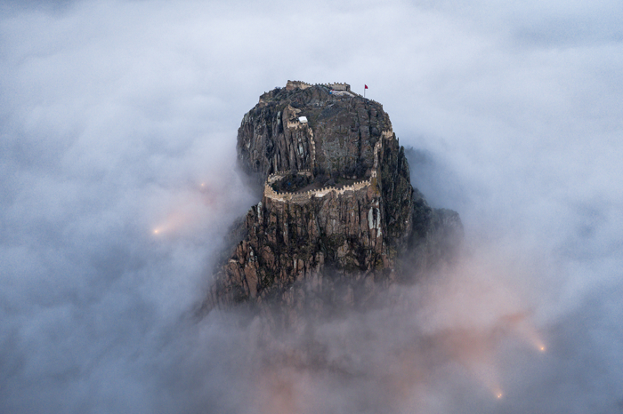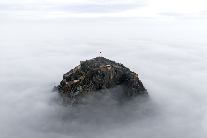 AA ise sisin ardından yükselen Afyonkarahisar Kalesi'nin etkileyici fotoğraflarını böyle paylaştı.