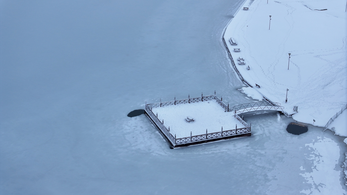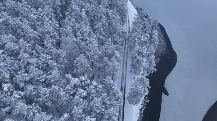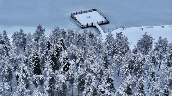 Yayla ve gölet çevresindeki sarıçam, köknar, kayın ve gürgen ağaçları ile patika yolların oluşturduğu güzel manzaraya kar eşlik etti.