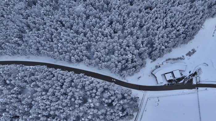 Yayla ve çevresinin karla kaplı görüntüsü havadan görüntülendi.