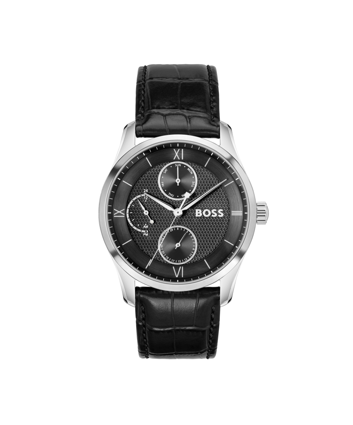 *Güçlü stilin sessiz ifadesi olan Boss erkek saat modeli, 41 mm çapındaki kasası, multifonksiyonel siyah kadranı ve siyah deri kayışıyla klasik şıklığı çağdaş bir duruşla yorumluyor. Maskülen zarafeti ön plana çıkaran Boss, sevgiyle paylaşılan anlara güçlü ve sofistike bir stil imzası katıyor.