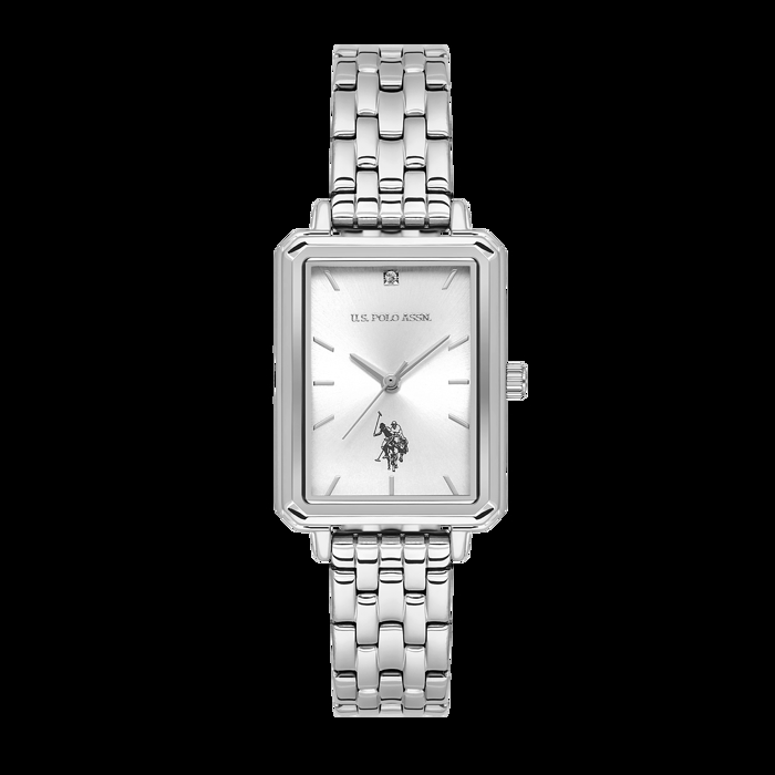 *Modern zarafeti ve güçlü bir stil ifadesini bir arada sunmak istiyorsanız U.S. Polo Assn. kadın saat modelinin metalik gri renkteki sekizgen kasası minimal bir duruş sergilerken, modern tasarımı günlük kullanıma konfor katıyor. Kadranda yer alan marka logosu ve 12 konumunda yer alan taş detayı ise tasarıma zarif bir ışıltı ekliyor.