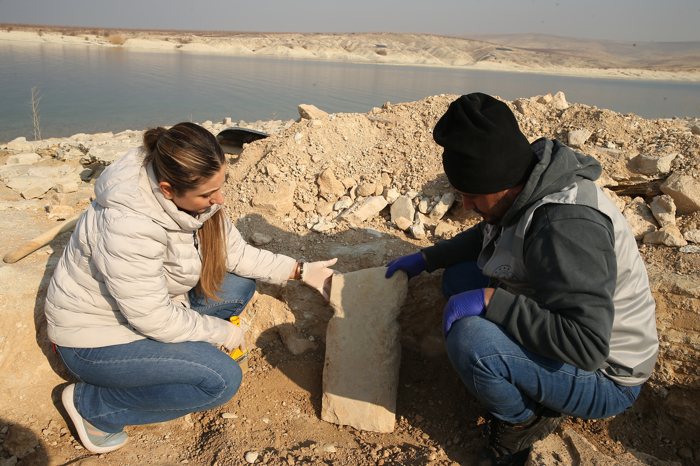"Söz konusu alan, aslında orijinalinde yaklaşık 2 veya 3 metre toprak altındaydı. Ancak baraj sularının yükselip alçalmasıyla, burada oluşan dinamik etkiden dolayı üstteki toprak örtü çekilince burada bulunan mevcut formlar ortaya çıkmış oldu. Amacımız şu anda sular yükselmeden önce mevcuttaki yapıları kurtarmaya çalışmak."