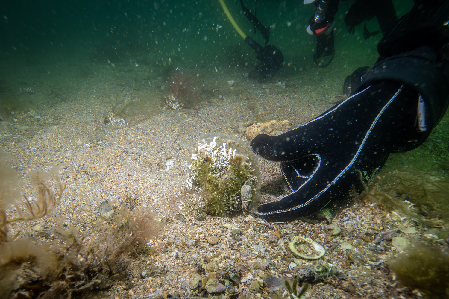 Anadolu Ajansı (AA) ekibi, Tuzla sahillerindeki bilimsel inceleme sırasında proje kapsamında su altında pinalar ve deniz çayırlarının habitatında yapılan çalışmaları yerinde takip etti. AA muhabiri de su altından yaptığı anonsla gelişmeleri aktardı.